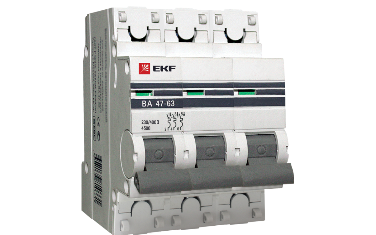 Модульные автоматические выключатели серии ВА 47-63 EKF являются механическими коммутационными аппаратами. Применяются в административных, промышленных и жилых сооружениях для проведения тока в нормальном режиме, оперативного управления участками электрических цепей, служат в качестве основного элемента системы конечного распределения и выполняют защиту установок от перегрузок, коротких замыканий и сверхтоков, обеспечивая их надежную и безопасную эксплуатацию. Автоматические выключатели серии ВА 47-63 EKF оборудованы удобной ручкой управления, обеспечивающей безотказное оперирование изделиями. На лицевой панели выключателей имеется цветовой индикатор состояния. Конструкция установочного зажима облегчает установку выключателя на DIN-рейку.