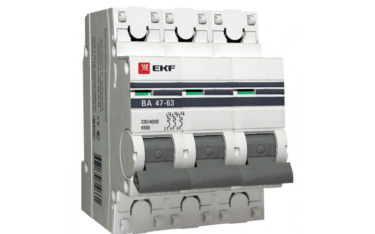 Модульные автоматические выключатели серии ВА 47-63 EKF являются механическими коммутационными аппаратами. Применяются в административных, промышленных и жилых сооружениях для проведения тока в нормальном режиме, оперативного управления участками электрических цепей, служат в качестве основного элемента системы конечного распределения и выполняют защиту установок от перегрузок, коротких замыканий и сверхтоков, обеспечивая их надежную и безопасную эксплуатацию. Автоматические выключатели серии ВА 47-63 EKF оборудованы удобной ручкой управления, обеспечивающей безотказное оперирование изделиями. На лицевой панели выключателей имеется цветовой индикатор состояния. Конструкция установочного зажима облегчает установку выключателя на DIN-рейку.
