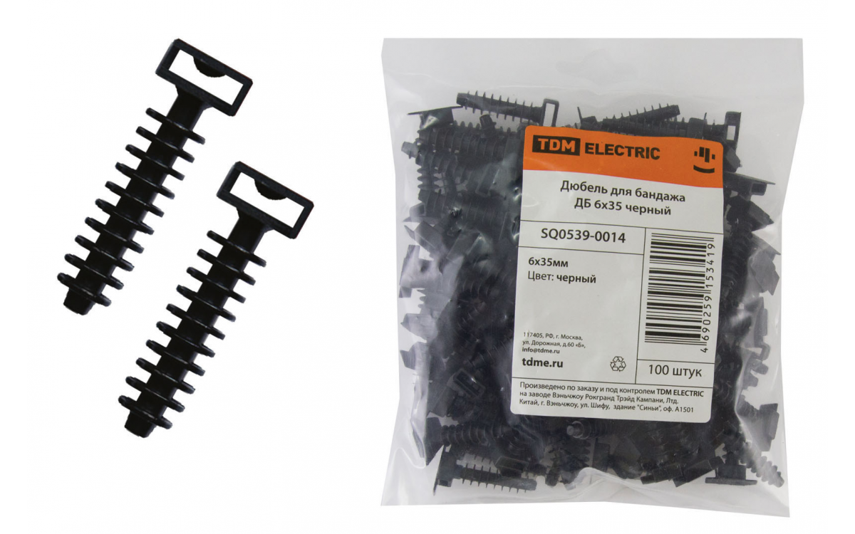 Дюбель 35мм пластик черный для крепления кабельными стяжками TDM ELECTRIC