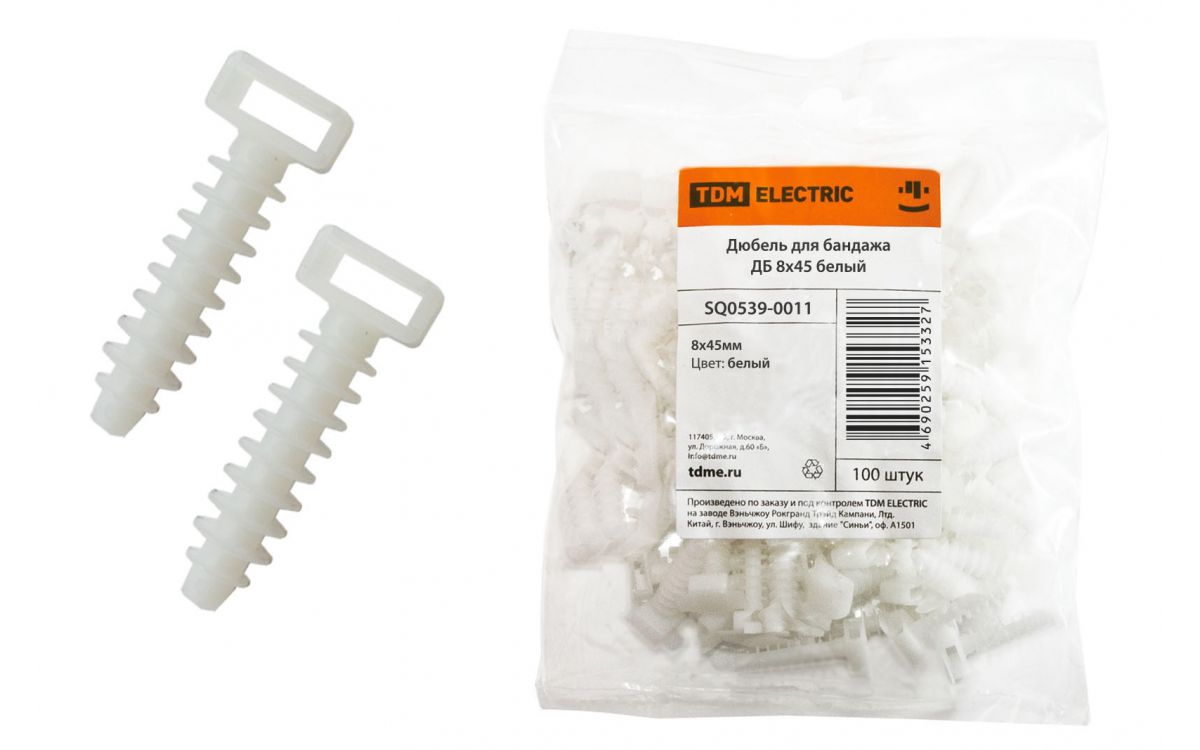 Дюбель 45мм пластик белый для крепления кабельными стяжками TDM ELECTRIC