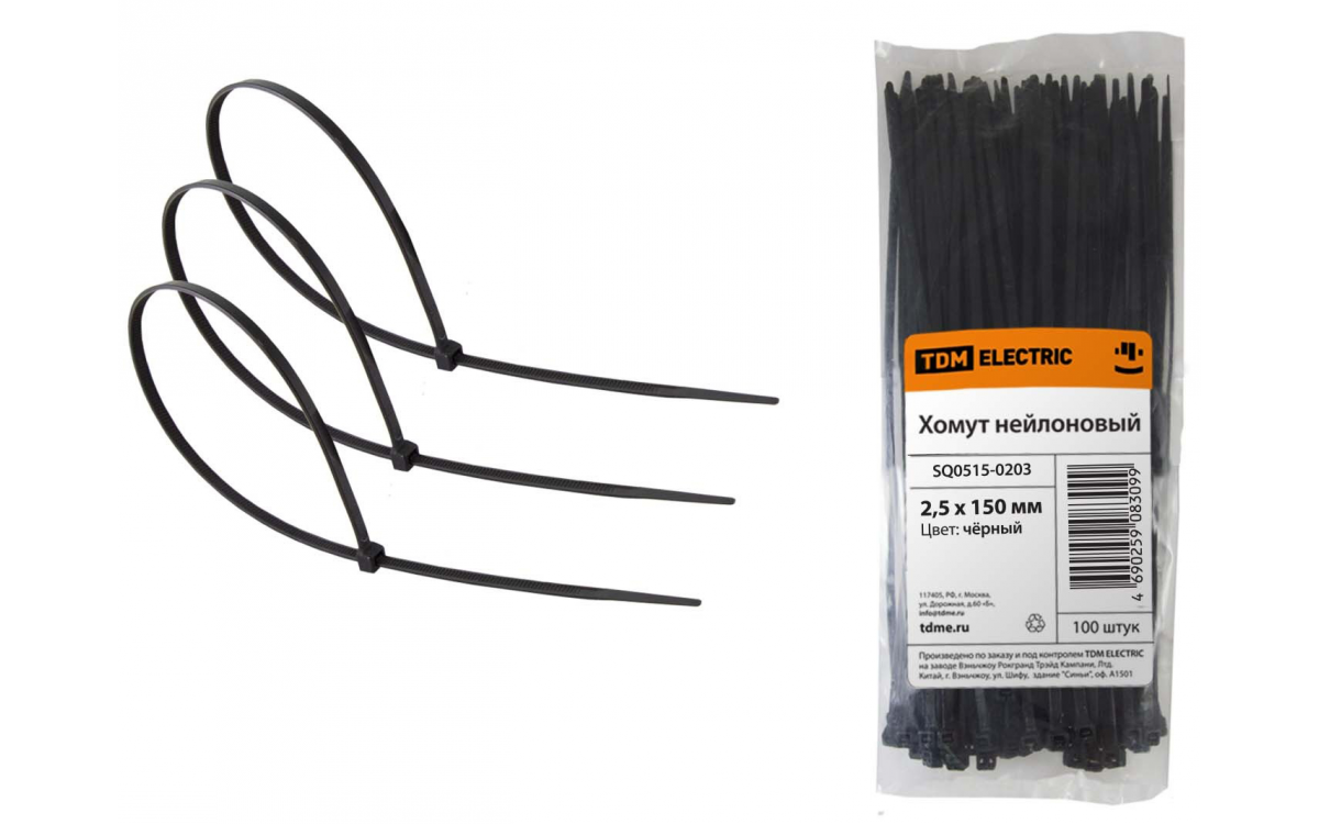 Стяжка кабельная (хомут) 2,5х150 мм (уп.=100шт) TDM