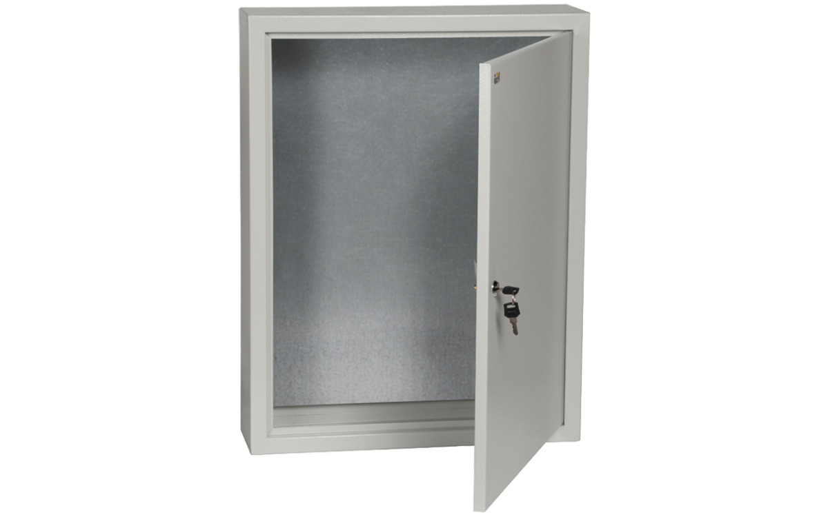 Сварной металлический корпус со съемной монтажной панелью. Дверца корпуса запирается на замок. Ключ замка имеет единый секрет.