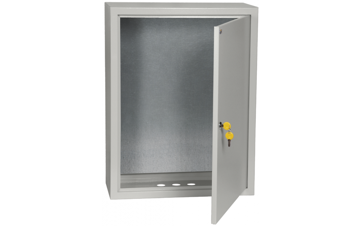 Сварной металлический корпус со съемной монтажной панелью. Дверца корпуса запирается на замок. Ключ замка имеет единый секрет.