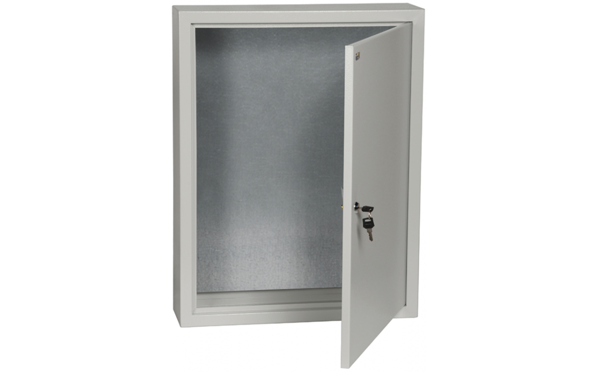 Сварной металлический корпус со съемной монтажной панелью. Дверца корпуса запирается на замок. Ключ замка имеет единый секрет.