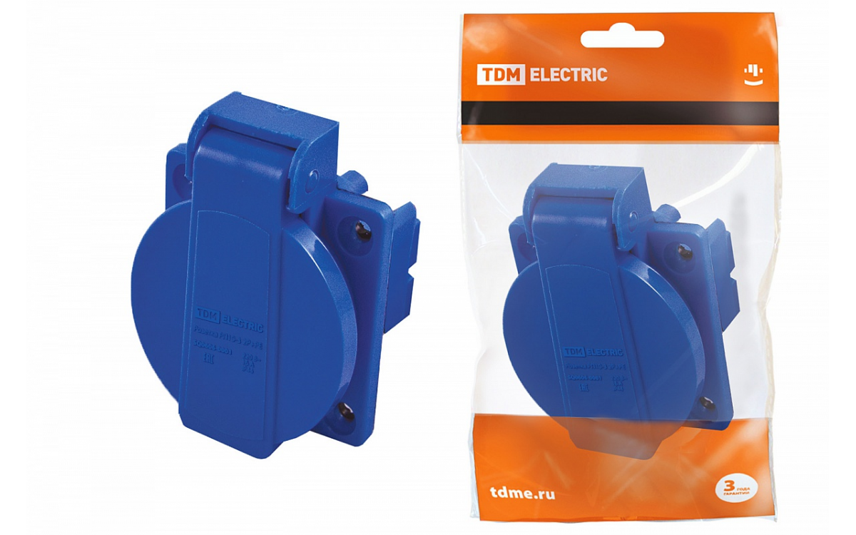 Розетка панельная РП10-3 скрытая с крышкой IP44 16А 2Р+РЕ 220В TDM