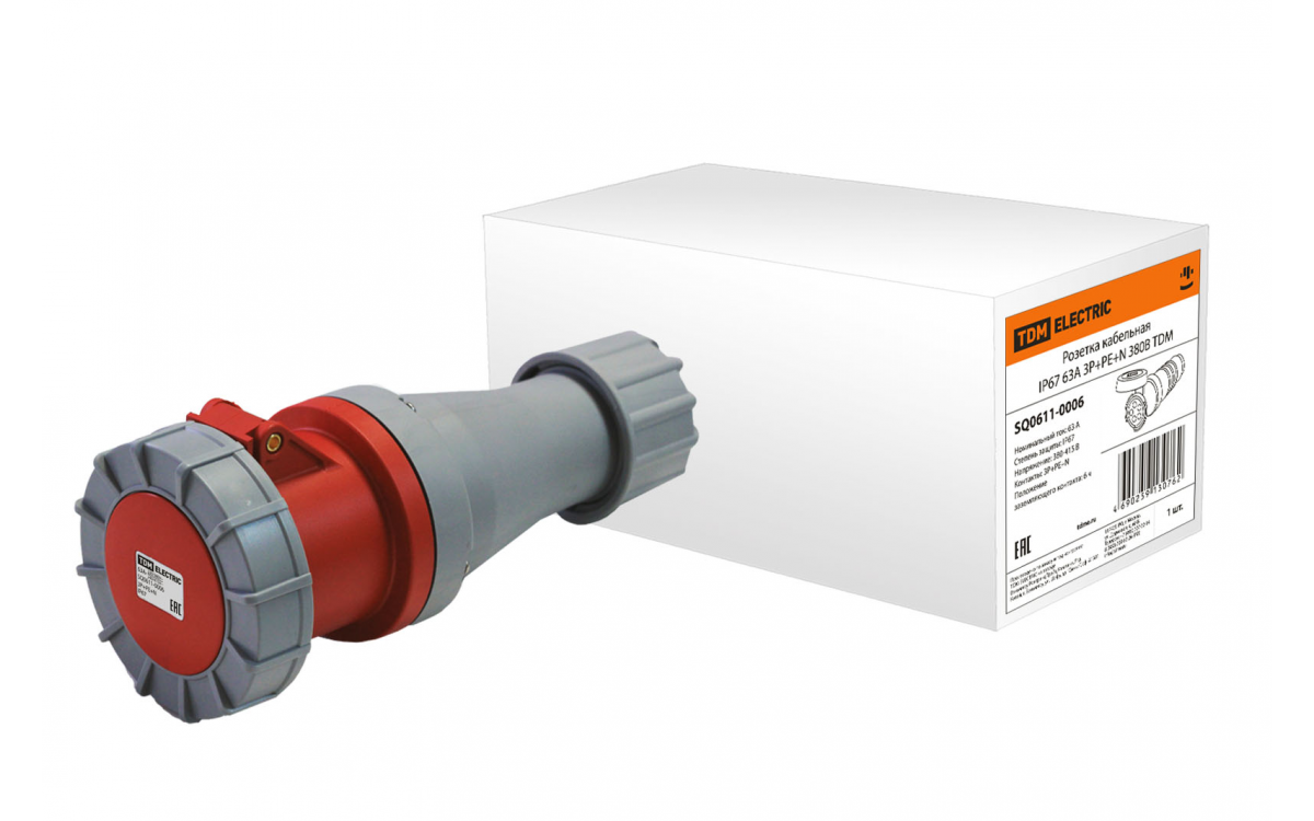 Розетка силовая кабельная переносная 5P 63А 400 в (50+60 гц) красная пластик ip67 TDM ELECTRIC