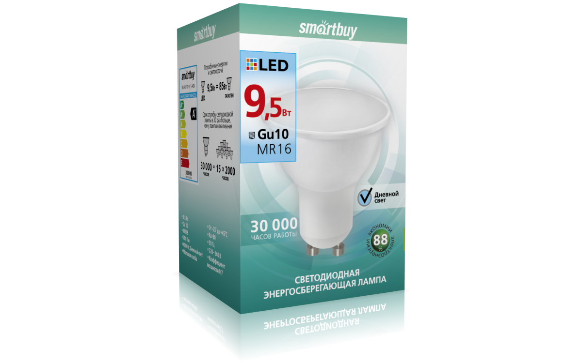 Светодиодная лампа Smartbuy SBL-GU10-9_5-40K общего или декоративного освещения, подходит для замены стандартных ламп накаливания и галогенных. Благодаря своей экономичности, длительному сроку службы и экологичности светодиодные лампы выгодно отличаются от своих предшественников. Не содержит ртуть, экологически безопасна.