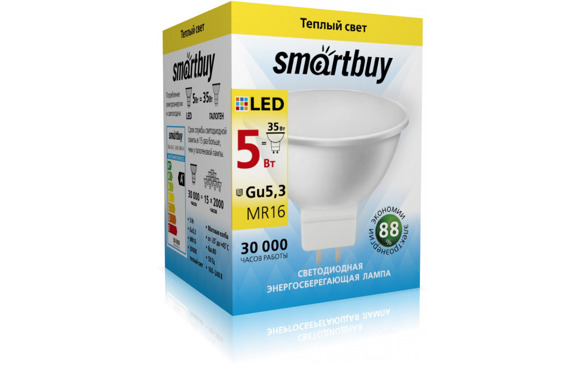 Светодиодная лампа SBL-GU5_3-05-30K-N энергосберегающая лампа направленного света, широко используется в помещениях — в различных точечных потолочных светильниках, для украшения витрин, в рекламных конструкциях и вывесках и многом другом. Хорошая цветопередача. Отсутствие мерцания обеспечивает меньшую утомляемость глаз. Высокоэффективный драйвер обеспечивает стабильную работу. Устойчива к механическому воздействию. Не содержит ртуть, экологически безопасна.