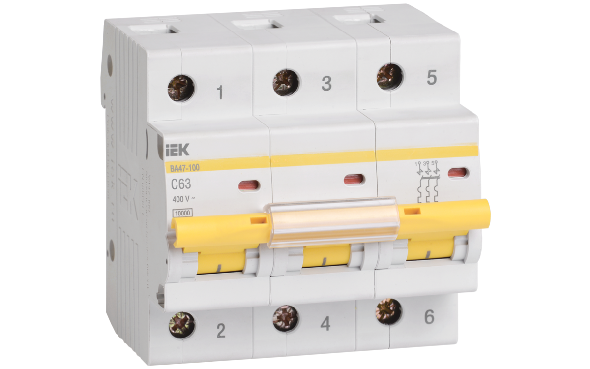 Увеличенная коммутационная способность 10 кА позволяет устанавливать ВА47-100 в качестве вводных автоматических выключателей.