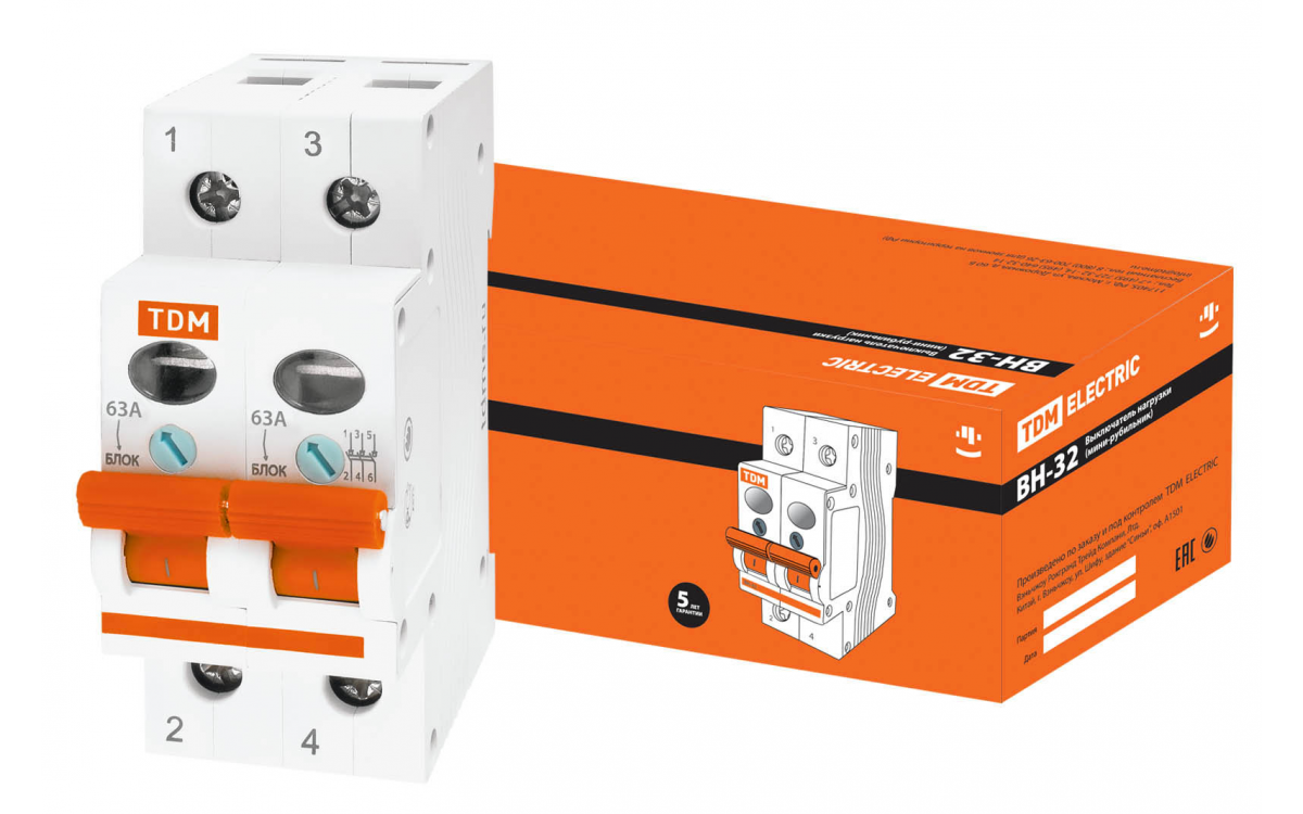 Выключатель нагрузки (мини-рубильник) ВН-32 2Р 63А TDM